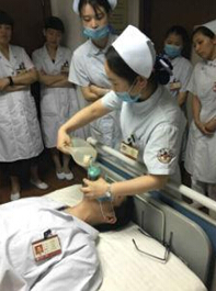 在培训工作开始时的基本知识讲解部分,展护士长深入浅出、认真细致地解析了本次新版心肺复苏指南与旧版的区别、及变动标准的依据和实际效果,并围绕“如何利用好心肺复苏最宝贵的5分钟”,结合传统的初期救治ABCD方案与最新CABD方案进行比较式解读,系统地更新了参训人员的“心肺复苏”知识。其中着重强调了胸外心脏按压的不间断性,按压的频率、深度,开放气道的手法,抢救病人时的颈椎保护等抢救时的操作规范要点。